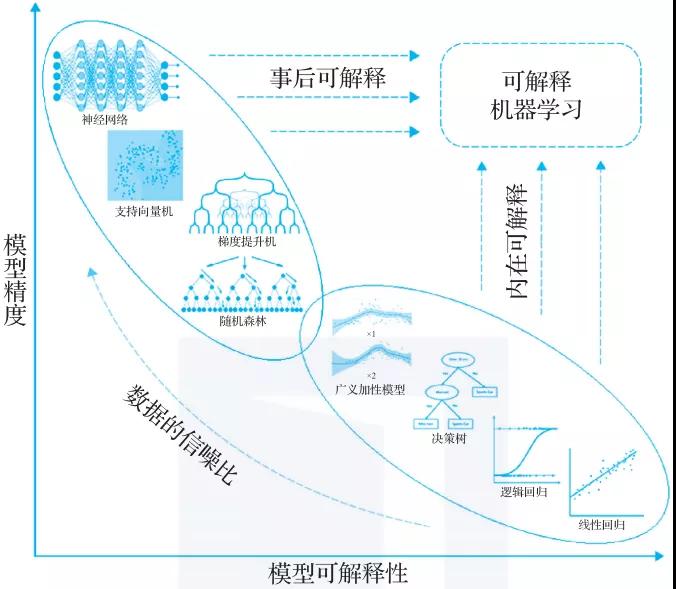 ▲图2-3 可解释机器学习:模型精度和模型可解释性的关系(图片来源:?香港大学张爱军博士)
