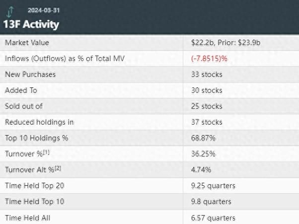 Gates Industrial Corp PLC (GTES.US)位列第四,持仓约7200万股,持仓市值约12.8亿美元,占投资组合比例为5.15%,较上季度持仓数量减少25.21%。